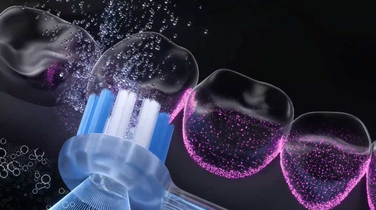 - バブル洗浄で歯垢除去率99.89%