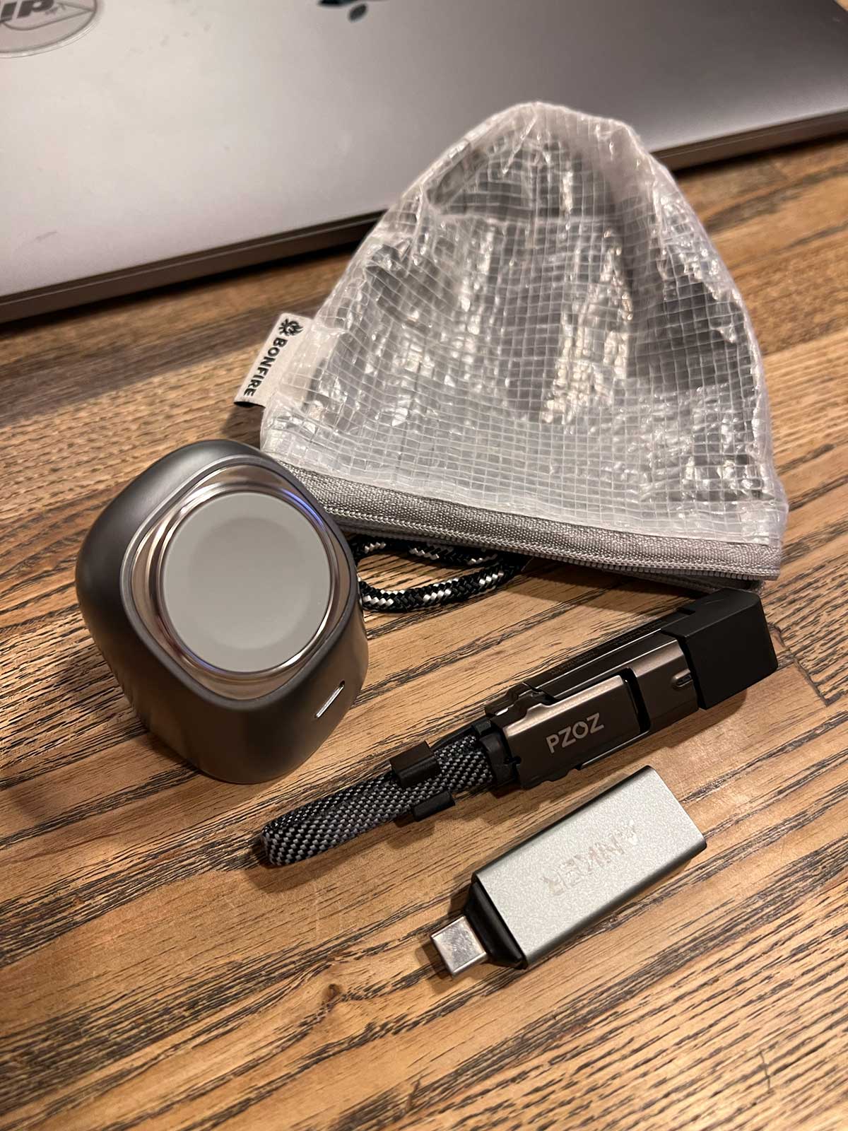 僕はいつもカバンの中に周辺機器を持ち歩いていますが、その中でUSB Type-Cの充電アダプターとApple Watchのポータブル充電器があります。