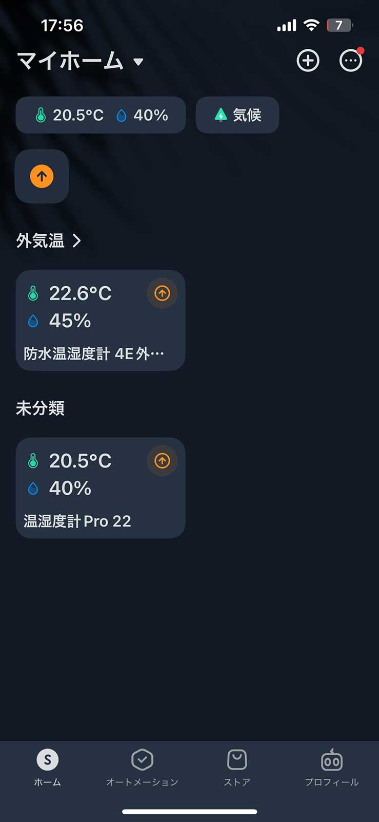画面上部がベランダに設置した追加分と、画面下部がSwitchBot 温湿度計Pro本体で計測された数値ですね。